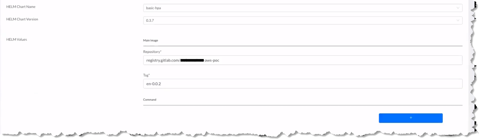 Once you select the HELM Chart and the version of the chart, you'll next set the deployment details by filling out the chart values